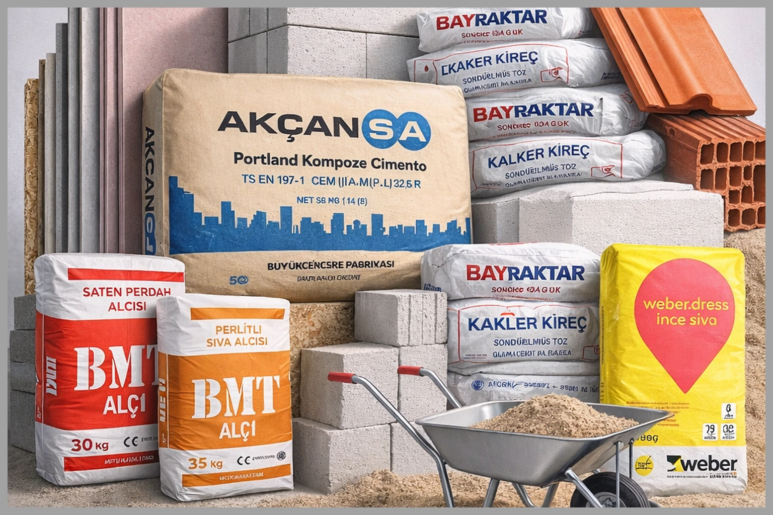 Yüksek dayanım ve uzun ömürlü yapı performansı sunan betopan, çimento ve ytong çözümlerimiz projelerinizde sağlam ve güvenli taşıyıcı sistemler oluşturur. Duvar ve çatı uygulamalarında tercih edilen tuğla, briket ve kiremit ürünlerimiz yapısal bütünlüğü desteklerken; ince işçilik ve yüzey kalitesi için geliştirilen sıva alçısı, saten alçı, weber hazır sıva ve sıva kumu seçeneklerimiz uygulamalara pürüzsüz sonuç kazandırır. Şantiye süreçlerini kolaylaştıran kireç ve el arabası ekipmanlarımız ile projelerinize eksiksiz ve profesyonel çözümler sunar.